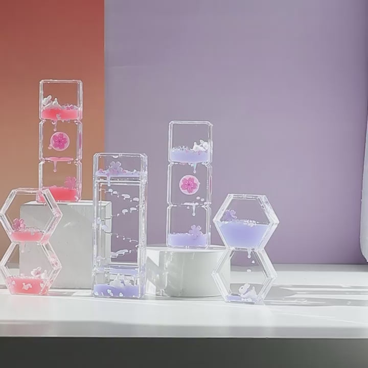 Pink Flower Oil Drip Hourglass – Cute Stress Relief Desk Toy for Kids & Adults